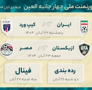 برنامه کامل دیدارهای تیم ملی فوتبال ایران در تورنمنت چهارجانبه بینالمللی که قرار است در فیفادی آبانماه در شهر العین امارات برگزار شود، اعلام...